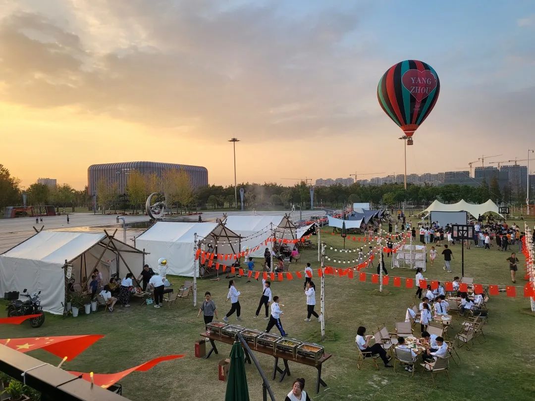 在航空馆露营地享用自助晚餐,看一部露天电影,还可以乘坐热气球俯瞰航空馆三河六岸的美景。